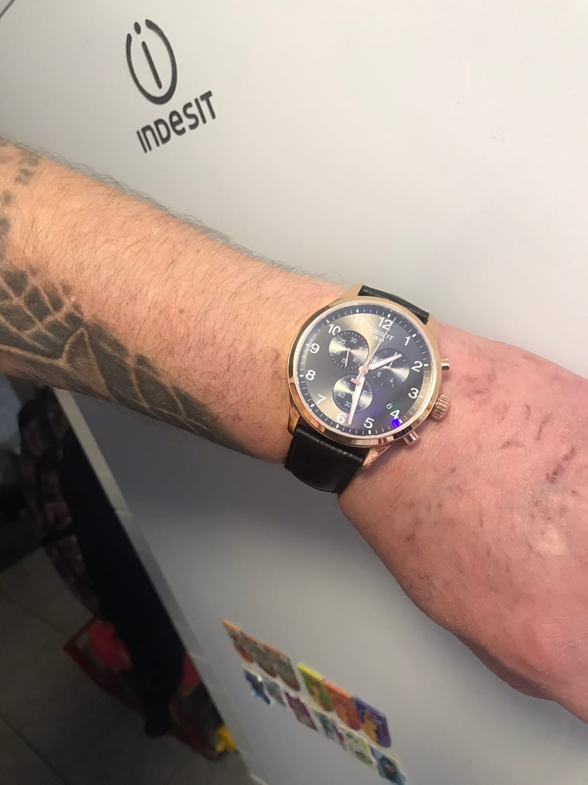 Мужские наручные часы-хронографХронографФункция позволяет измерять отрезки времени с особой точностью: часы, минуты, секунды. Верным признаком хронографа является наличие на циферблате 3 дополнительных окошек-счётчиков. из коллекции Chrono XL Classic одновременно отражают в себе классический и спортивный стиль, они будут хорошо сочетаться с любой одеждой. Часы настоящего швейцарского качества дополнены стильным ремешком, сделанным из натуральной коровьей кожи с тиснением под кожу крокодила. Большой диаметр корпуса (45 мм) солидно смотрится на запястье. Аксессуар оснащён кварцевым механизмом ETA G10.212 с высокой точностью хода. Сапфировое стеклоСапфировое стеклоПрочный и надёжный материал из кристалла сапфира синтетического происхождения, характеризующийся особой твёрдостью и устойчивостью к царапинам и повреждениям.. PVDPVDУльтратонкое покрытие наносится в технике вакуумного напыления, сочетает в себе нитрид титана особой прочности со слоем золота или оксида хрома. Несёт в себе декоративную или защитную функцию.-покрытие корпуса в золотом цвете. СекундомерСекундомерСекундоме́р — прибор, способный измерять интервалы времени с точностью до долей секунды., дата. Габариты: 45 x 45 x 11 мм. Производство и сборка: Швейцария.