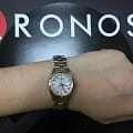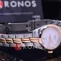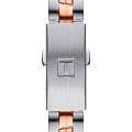 Дизайнеры реализуют свои идеи в оригинальном оформлении браслетов, центральные звенья цвета "розовое золото" приковывают взгляды. Интерес представляет также перламутровый циферблат компактного размера, благодаря этому часы красиво смотрятся на изящном женском запястье. Кварцевый механизм ETA F03.111. PVD-покрытие корпуса и браслета. Водонепроницаемость 100 метров. Габариты: 25 x 25 x 6,9 мм.