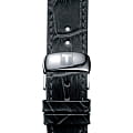 Модель сочетает в себе белый, чёрный, серебристый цвет, подобное исполнение позволяет носить их даже с одеждой самых смелых оттенков. Секундная стрелка выполнена в виде шпаги, необычный узор украшает массивный циферблат с дополнительными счётчиками хронографаХронографФункция позволяет измерять отрезки времени с особой точностью: часы, минуты, секунды. Верным признаком хронографа является наличие на циферблате 3 дополнительных окошек-счётчиков.. Кварцевый калибр ETA G10.211 с 4 камнями. Ремешок из натуральной кожи с тиснением под кожу крокодила. Стальной ударопрочный корпус. Хронограф, тахиметрТахиметрРазмеченная шкала, располагается на ободке или безеле часов. Тахиметр позволяет рассчитать скорость на определённом участке пути, расстояние измеряется в километрах или милях., секундомер, дата. Габариты: 41 x 42 x 12 мм.