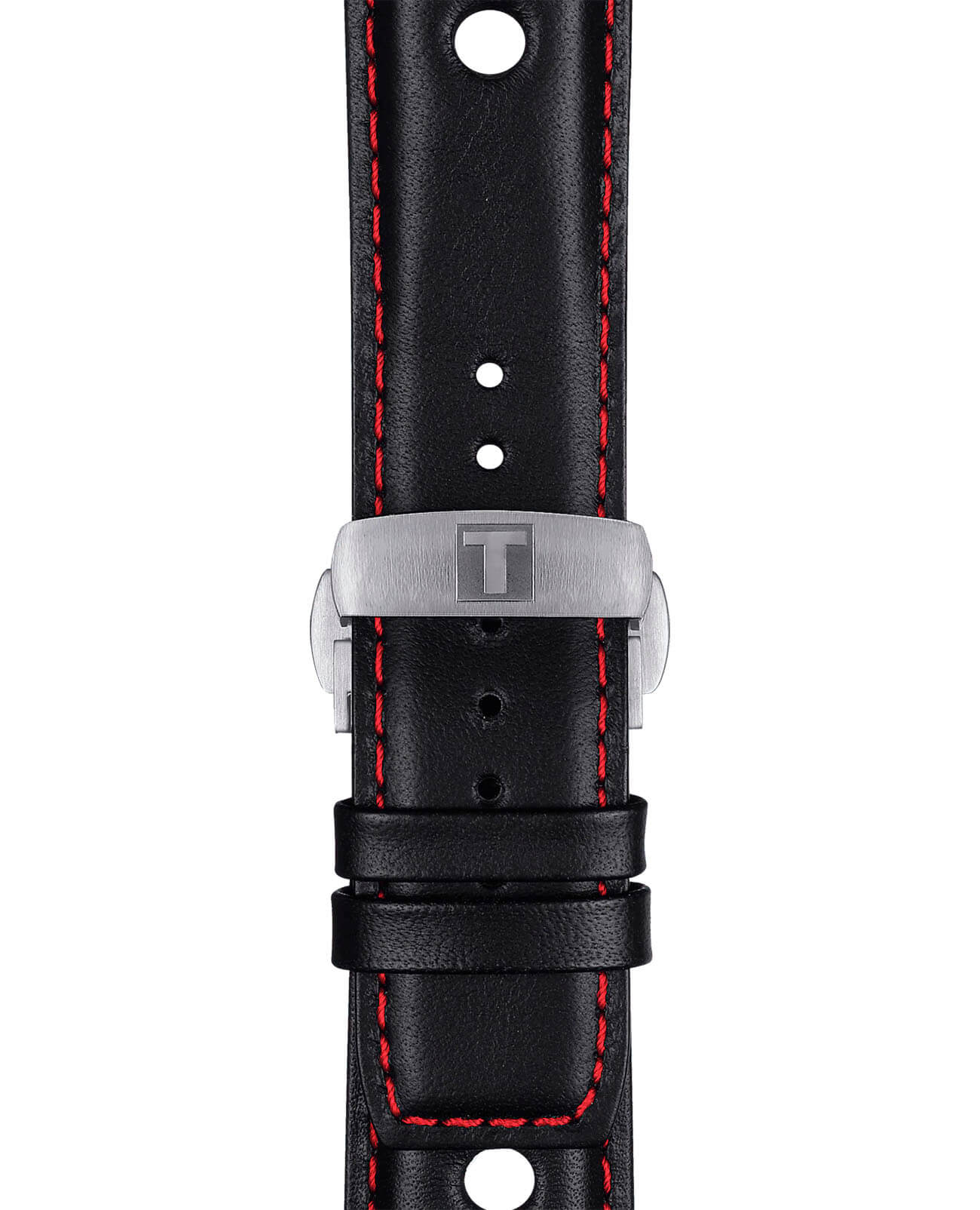 Брендовый аксессуар отражает стиль оформления, присущий гоночным машинам 60-х годов. Модель отличается характерным ребристым циферблатом и красными деталями, оригинальности придаёт керамический безельБезельВнешний ободок, закрепляющий стекло. В спортивных часах так называется поворотное кольцо с делениями на циферблате, выполняет роль таймера – замеряет отрезки времени на шкале. Неподвижный безель – элемент декора. Однонаправленно вращающийся безель на дайверских часах позволяет фиксировать моменты погружения и выныривания на поверхность.. Лучшим дополнением к общей картине стал кожаный перфорированый ремешок с красной прострочкой. Часы оснащены автоматическим механизмом ETA Valjoux A05.H21ValjouxПремиальный калибр от швейцарской компании ETA c уникальной отделкой механизма. Отличается увеличенным запасом хода от 45 до 60 часов, в зависимости от калибра, точность хода составляет +/- 5 секунд в сутки. премиальной категории с запасом хода 60 часов. Прозрачная задняя крышка корпуса. Стекло из сапфира с антибликовым покрытием. Сохранение водостойкости при давлении 10 бар. Корпус из нержавеющей стали 316L. Люминесцентная подсветкаЛюминесцентное покрытиеПозволяет считывать показания времени в темноте. Производители наносят на стрелки, часовые индексы, безель или поверхность циферблата светонакопительный состав, дающий холодное свечение.. Секундомер, хронографХронографФункция позволяет измерять отрезки времени с особой точностью: часы, минуты, секунды. Верным признаком хронографа является наличие на циферблате 3 дополнительных окошек-счётчиков., отображение числа. . Габариты: 45 x 45 x 15,8 мм.