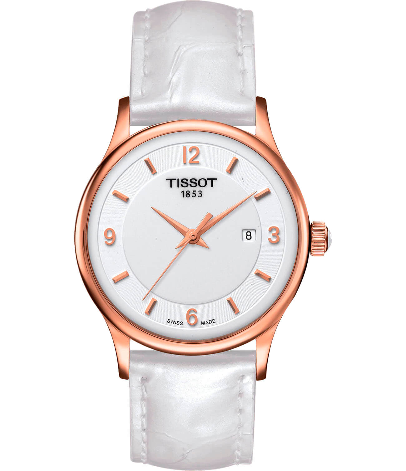 Лаконичный белый циферблат с арабскими цифрами в сочетании с ремешком из натуральной кожи являет настоящую классику, такое исполнение всегда останется актуальным. Корпус сделан из 18-каратного розового золота18-каратное золотоОбозначение по каратной системе пробирования, оно показывает, сколько драгоценного металла содержится в изделии. 18 карат - в составе 75% чистого золота, соответствует 750 пробе.