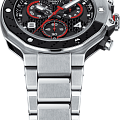 Стильное оформление корпуса выгодно подчеркнет повседневный образ. Циферблат обрамленный красными оттенками добавляет спортивности. Фирменная гравировка логотипа MotoGP на задней крышке. Высокая точность хода обусловлена наличием швейцарского кварцевого калибра ETA G10.212. Сапфировое стекло с антибликовым покрытием. Литой браслет из нержавеющей стали. Люминесцентная подсветкаЛюминесцентное покрытиеПозволяет считывать показания времени в темноте. Производители наносят на стрелки, часовые индексы, безель или поверхность циферблата светонакопительный состав, дающий холодное свечение.. Корпус из нержавеющей стали с черным PVD-покрытиемPVDУльтратонкое покрытие наносится в технике вакуумного напыления, сочетает в себе нитрид титана особой прочности со слоем золота или оксида хрома. Несёт в себе декоративную или защитную функцию.. Водостойкость 100 метров. Секундомер, тахиметрТахиметрРазмеченная шкала, располагается на ободке или безеле часов. Тахиметр позволяет рассчитать скорость на определённом участке пути, расстояние измеряется в километрах или милях., индикация числа, хронографХронографФункция позволяет измерять отрезки времени с особой точностью: часы, минуты, секунды. Верным признаком хронографа является наличие на циферблате 3 дополнительных окошек-счётчиков.. Габариты: 45 x 45 x 11,8 мм.