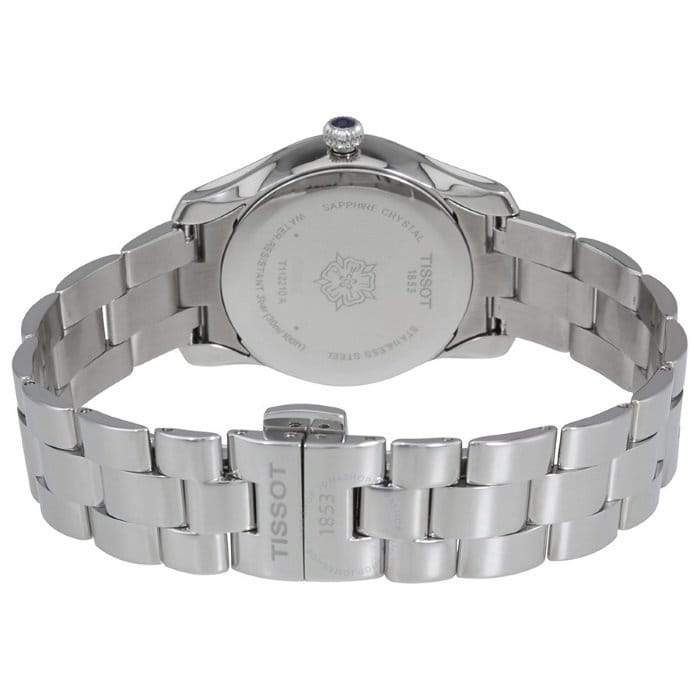 TISSOT T-Wave T1122101104100 - женские кварцевые наручные часы Корпус этих часов небольшого размера (30 мм) и выполнен из нержавеющей стали L316 Модель T-Wave T1122101104100 имеет устойчивое к царапинам сапфировое стекло, браслет из нержавеющей стали , синий циферблат Калибр механизма: ETA F04111 Класс водозащиты: 30 м / 3 АТМ Дополнительные функции и особенности: нет Полная заводская комплектация TISSOT: оригинальные часы, фирменная коробка, инструкция, сервисная книжка, роман о часовой фабрике, миникаталог, замшевый фирменный чехол годачерного цвета для хранения и/или переноски часов, кассовый и товарный чеки