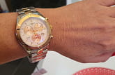 Окошко даты. Перламутровый циферблат. Дополнительные счётчики хронографа. Высокоточный кварцевый механизм.