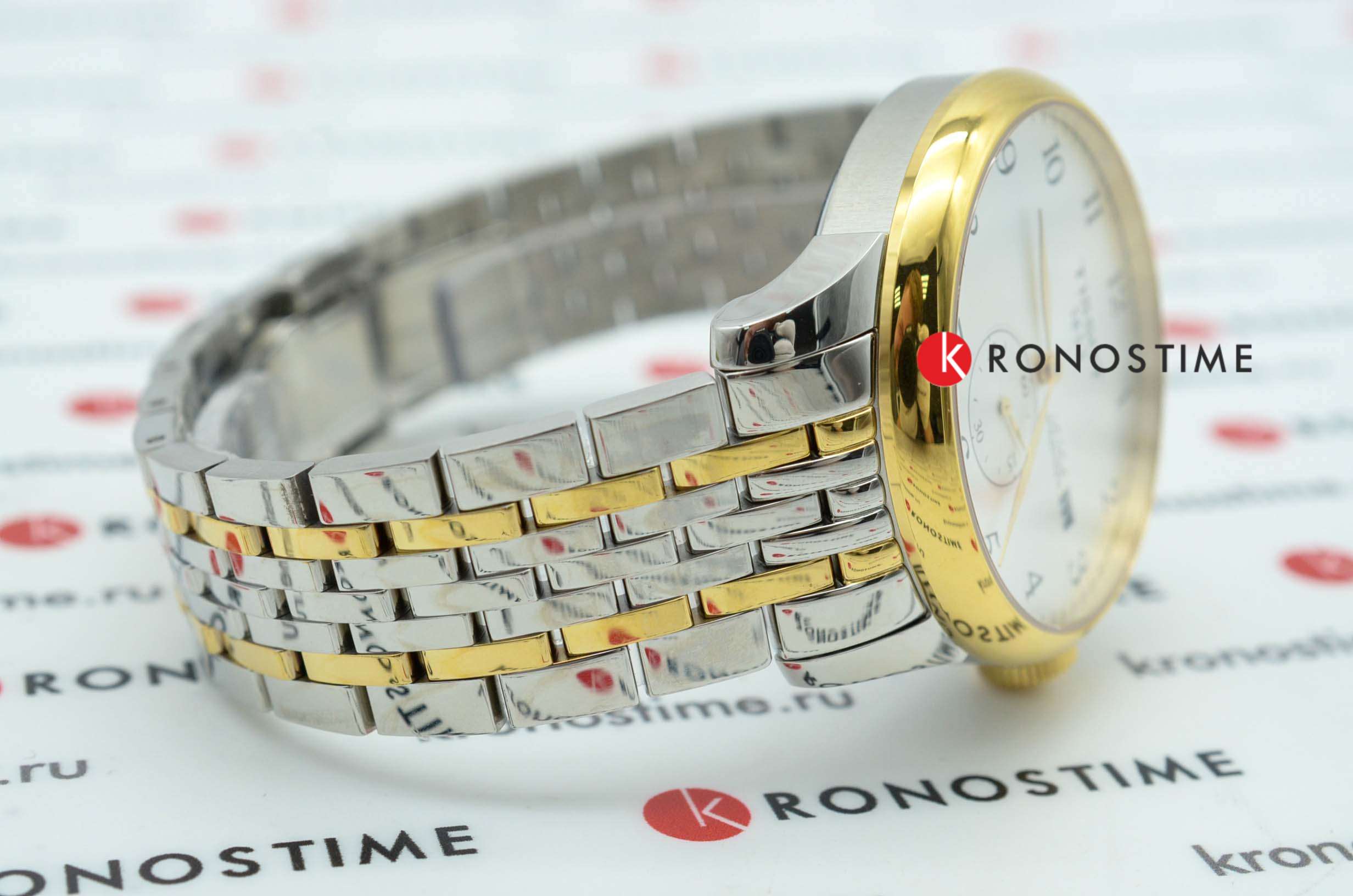 Брендовая модель в биколорном оформлении сочетает в себе сияние серебряного и золотистого оттенков. Отличительная особенность – отдельный мини-счётчик секунд. Функциональное окошко расположено на отметке 6 часов, контрастные арабские цифры обеспечивают идеальную читаемость данных. Автоматический швейцарский механизм ETA 2825-2 сохраняет запас хода до 38 часов. Задняя крышка оставлена прозрачной. Стекло из сапфира. Стальной корпус и браслет с частичным PVD-покрытиемPVDУльтратонкое покрытие наносится в технике вакуумного напыления, сочетает в себе нитрид титана особой прочности со слоем золота или оксида хрома. Несёт в себе декоративную или защитную функцию.. Базовая водозащита до 3 бар. . Апертура даты. Габариты: 39,3 x 39,3 x 11,55 мм.