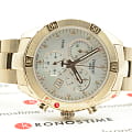 Стильный перламутровый циферблат инкрустирован 12 бриллиантами цвета Top Wesselton, роскошные переливы завораживают и приманивают взгляды окружающих. Драгоценные камни гарантировано имеют законное происхождение и никогда не были замешаны в финансовых конфликтах. Модель имеет привлекательное PVD-покрытиеPVDУльтратонкое покрытие наносится в технике вакуумного напыления, сочетает в себе нитрид титана особой прочности со слоем золота или оксида хрома. Несёт в себе декоративную или защитную функцию. в цвете розового золота. Часы оснащены высокоточным кварцевым калибром ETA G15.212. Люминесцентная подсветкаЛюминесцентное покрытиеПозволяет считывать показания времени в темноте. Производители наносят на стрелки, часовые индексы, безель или поверхность циферблата светонакопительный состав, дающий холодное свечение. стрелок. Надёжное сапфировое стекло. Индикация текущего числа, функция EOLEOLПредставляет собой систему, уведомляющую владельца часов о необходимости замены элемента питания. За 2 недели до полного разряда батарейки секундная стрелка перестаёт ходить чётко и начинает перепрыгивать на 3-4 деления.. Габариты: 38 x 38 x 10,5 мм.