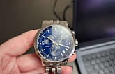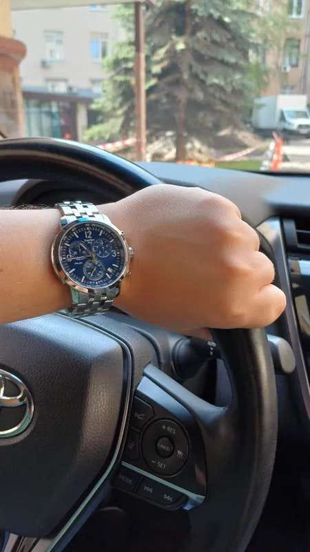 Швейцарские кварцевые часы комплектуются механизмом ETA G10.211 – популярный калибр с высокой точностью хода. Тёмно-синий циферблат дополнен стильными элементами: большие кнопки, 3 дополнительных счётчика, чёткие часовые индексы и конические стрелки с люминесцентной подсветкойЛюминесцентное покрытиеПозволяет считывать показания времени в темноте. Производители наносят на стрелки, часовые индексы, безель или поверхность циферблата светонакопительный состав, дающий холодное свечение.. Корпус из нержавеющей стали 316L. Завинчивающиеся заводная головка и задняя крышка корпуса. Водонепроницаемость 200 метров. Габариты: 42 x 43 x 12 мм.