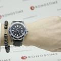 Ремешок выполнен из натуральной кожи чёрного цвета и дополнен классической застёжкой-пряжкой. Модель обладает водонепроницаемостью до 100 метров, что делает её подходящей для активного повседневного использования.