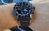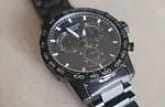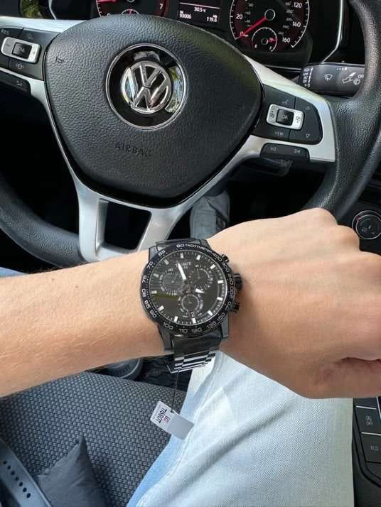 Современный хронографХронографФункция позволяет измерять отрезки времени с особой точностью: часы, минуты, секунды. Верным признаком хронографа является наличие на циферблате 3 дополнительных окошек-счётчиков. поможет подчеркнуть продуманный образ делового мужчины. Модель выполнена в чёрной-белой расцветке. Наручные часы функционируют благодаря швейцарскому кварцевому механизму ETA G10.212. Калибр отличается максимальной точностью хода. Стекло из сапфира. Водостойкость 100 метров. Надёжный корпус из антикоррозионной стали 316L с чёрным PVD-покрытиемPVDУльтратонкое покрытие наносится в технике вакуумного напыления, сочетает в себе нитрид титана особой прочности со слоем золота или оксида хрома. Несёт в себе декоративную или защитную функцию.. Люминесцентная подсветкаЛюминесцентное покрытиеПозволяет считывать показания времени в темноте. Производители наносят на стрелки, часовые индексы, безель или поверхность циферблата светонакопительный состав, дающий холодное свечение. стрелок и индексов. Секундомер, отображение даты. Диаметр корпуса: 45,5 мм.
