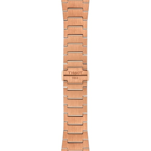 Tissot PRX Powermatic 80 T137.407.33.041.00 — современная и стильная интерпретация культового дизайна 70-х годов с акцентом на премиальную отделку и автоматическую механику. Корпус диаметром 40 мм выполнен из нержавеющей стали 316L с изысканным розовым PVD-покрытиемPVDУльтратонкое покрытие наносится в технике вакуумного напыления, сочетает в себе нитрид титана особой прочности со слоем золота или оксида хрома. Несёт в себе декоративную или защитную функцию.. Циферблат защищён сапфировым стекломСапфировое стеклоПрочный и надёжный материал из кристалла сапфира синтетического происхождения, характеризующийся особой твёрдостью и устойчивостью к царапинам и повреждениям. с антибликовым покрытиемАнтибликовое покрытиеСлой оксида металла в 0,13-0,3 микрон, благодаря которому стекло часов не бликует и не отражает свет. Антибликовое покрытие уменьшает отражение света в 10 раз, обеспечивая отличную читаемость показателей циферблата., обеспечивающим стойкость к царапинам и отличную читаемость. Тёмно-синий циферблат с текстурой «вафля» оформлен в фирменном стиле PRX и дополнен золотистыми стрелками и индексами с покрытием Super-LumiNova®Люминесцентное покрытиеПозволяет считывать показания времени в темноте. Производители наносят на стрелки, часовые индексы, безель или поверхность циферблата светонакопительный состав, дающий холодное свечение.. Окно даты расположено на позиции «3 часа». Внутри установлен автоматический механизм Powermatic 80 SiliciumPowermatic 80 SiliciumМеханизм обладает самой высокой точностью хода за всю историю Tissot. Дополняется уникальной кремниевой спиралью, минимизирующей воздействие магнитных полей и перепада температур. Сохраняется запас хода до 80 часов благодаря удлиненной заводной пружине и снижению трения в системе спуска. с запасом хода до 80 часов и спиралью из антимагнитного сплава Nivachron™Nivachron™Специально разработанный инновационный сплав Nivachron™ повышает устойчивость часов к воздействию магнитных полей.. Модель укомплектована интегрированным браслетом с розовым PVD-покрытиемPVDУльтратонкое покрытие наносится в технике вакуумного напыления, сочетает в себе нитрид титана особой прочности со слоем золота или оксида хрома. Несёт в себе декоративную или защитную функцию. и застёжкой 'бабочка'Застёжка "бабочка"Такой вид застёжки дополняется предохранителями, помогающими избежать случайного раскрытия браслета. Обладают изящным исполнением. , снабжённой кнопками и системой быстрой замены. Водонепроницаемость 100 метров делает эту модель практичным выбором для повседневной жизни и выходов в свет. PRX T137.407.33.041.00 — баланс технического совершенства и эстетической утончённости.