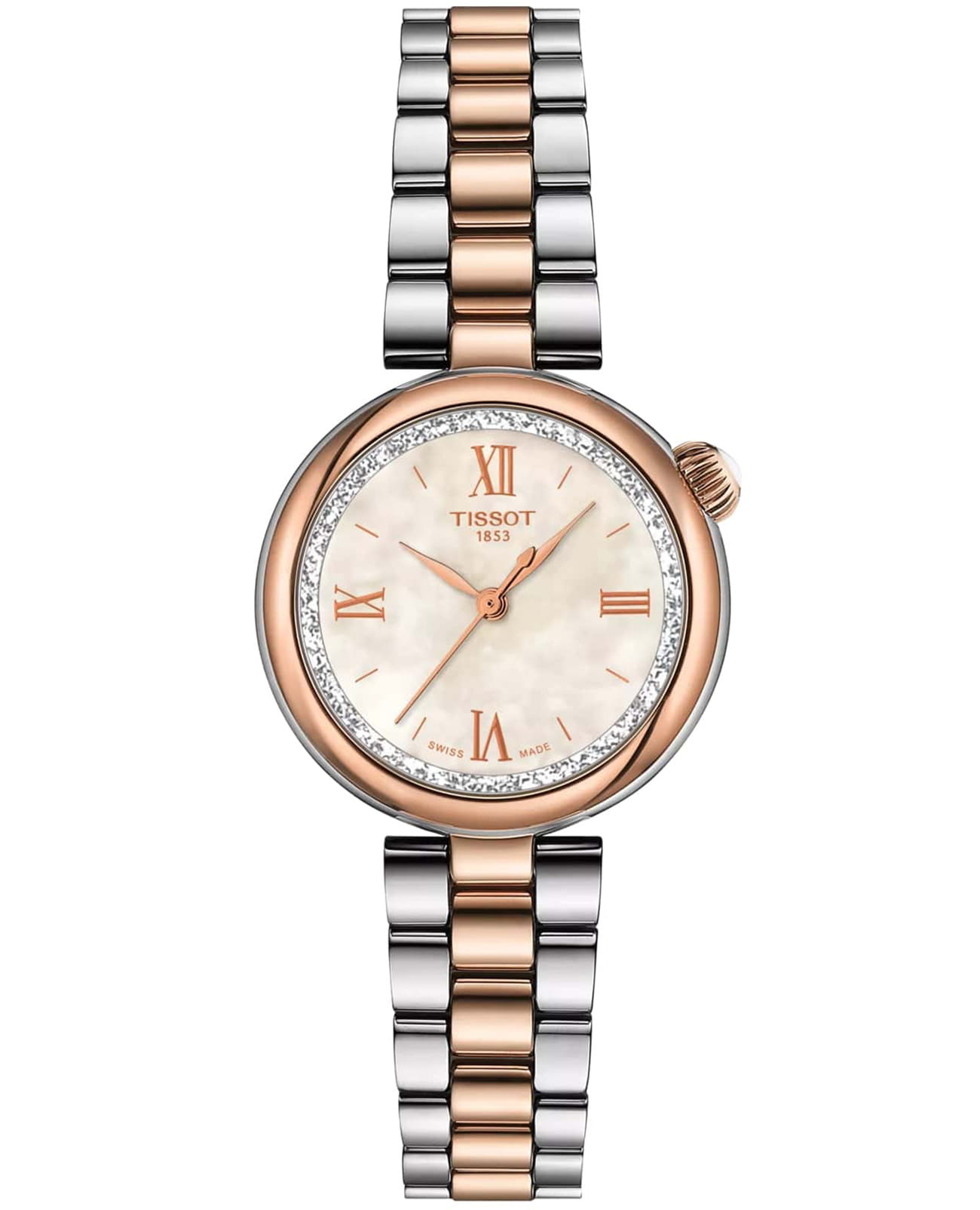 Часы Tissot Desir T152.010.22.118.00 сочетают элегантность и надёжность. Корпус диаметром 28 мм выполнен из нержавеющей стали 316L БезельБезельВнешний ободок, закрепляющий стекло. В спортивных часах так называется поворотное кольцо с делениями на циферблате, выполняет роль таймера – замеряет отрезки времени на шкале. Неподвижный безель – элемент декора. Однонаправленно вращающийся безель на дайверских часах позволяет фиксировать моменты погружения и выныривания на поверхность. с PVD-покрытиемPVDУльтратонкое покрытие наносится в технике вакуумного напыления, сочетает в себе нитрид титана особой прочности со слоем золота или оксида хрома. Несёт в себе декоративную или защитную функцию. цвета розового золота, придающим часам изысканный вид. Циферблат из белого перламутра защищён выпуклым сапфировым стекломСапфировое стеклоПрочный и надёжный материал из кристалла сапфира синтетического происхождения, характеризующийся особой твёрдостью и устойчивостью к царапинам и повреждениям. с антибликовым покрытием, обеспечивающим стойкость к царапинам и отличную читаемость.