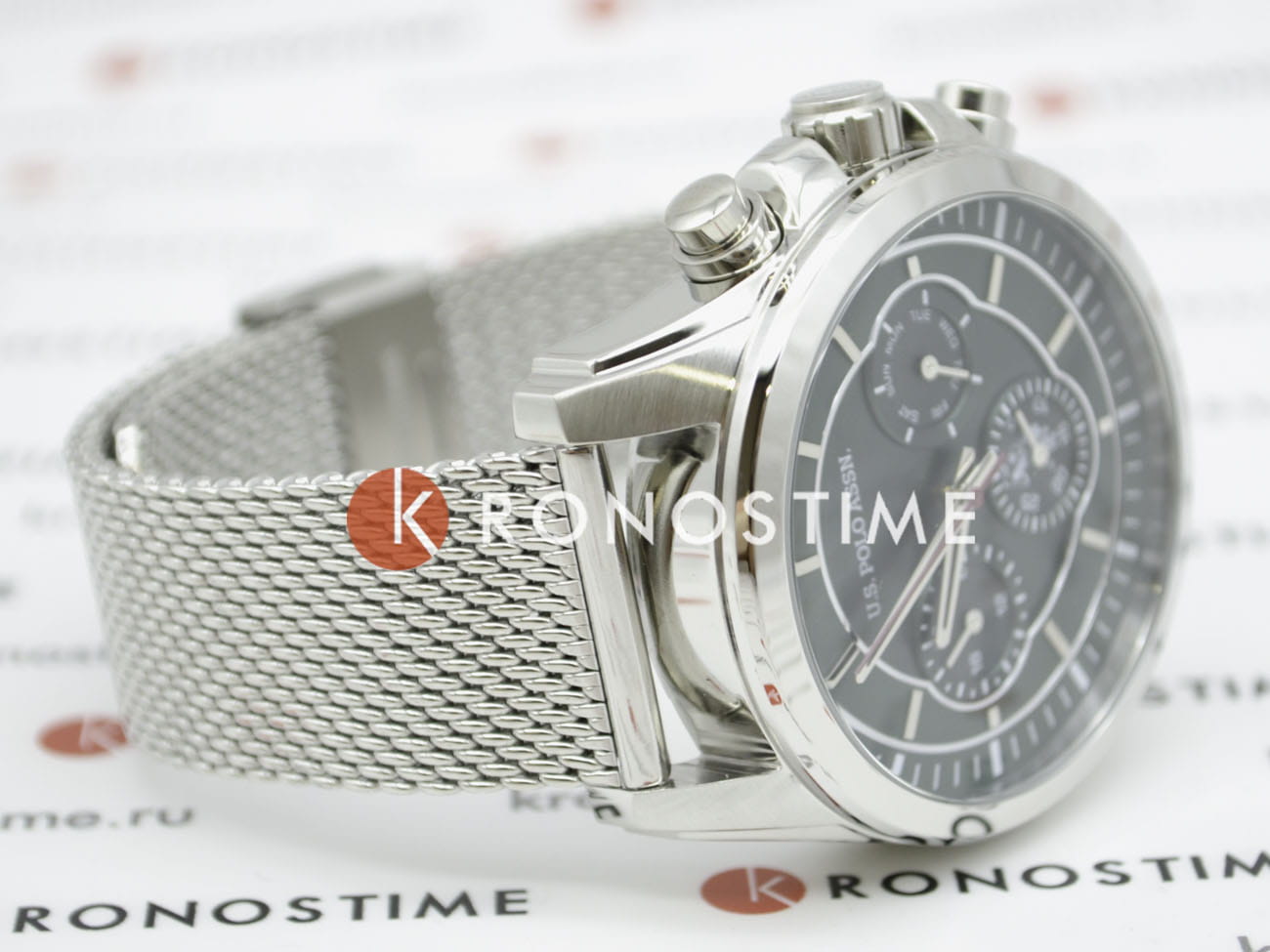 Мужские часы U.S. Polo Assn. Crossing USPA1028-08, кварцевый механизм с высокой точностью. Минеральное стеклоМинеральное стеклоМинеральное стекло представляет собой искусственно выращенный минерал кварца. Такое стекло отличается особой устойчивостью к повреждениям и царапинам. Уступает по некоторым качествам сапфировому стеклу. устойчивое к появлению царапин, обладающее высокой прозрачностью. Корпус изготовлен из нержавеющей стали. На циферблате три дополнительных индикатора. Центральные часовая, минутная и секундная стрелки. Индикация даты и дня недели. 12/24х часовой формат времени. Стрелки с люминесцентным покрытиемЛюминесцентное покрытиеПозволяет считывать показания времени в темноте. Производители наносят на стрелки, часовые индексы, безель или поверхность циферблата светонакопительный состав, дающий холодное свечение.. Класс водозащиты: 50 метров, позволит защитить корпус от случайных брызг или капель дождя. Стальной браслет миланского плетения на раскладном замкеРаскладной замокДанный вариант застежки используется только на часах с металлическим браслетом. Отличительная особенность такого крепления в том, что длина браслета становится универсальной и вы можете самостоятельно отрегулировать нужный вам размер – застежка просто двигается по браслету часов..