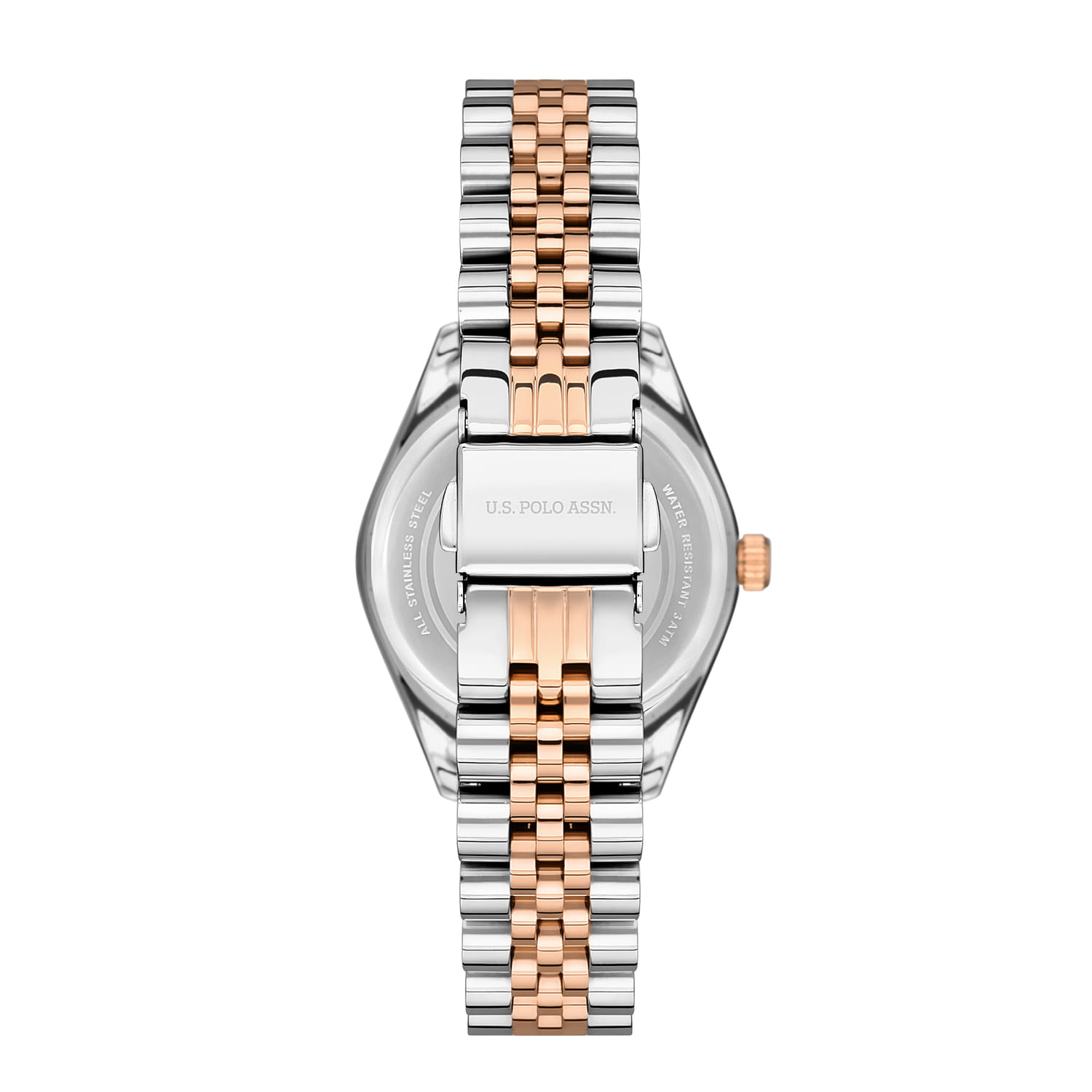 Женские часы U.S. Polo Assn. Fundamental USPA2063-05, кварцевый механизм с высокой точностью. Минеральное стеклоМинеральное стеклоМинеральное стекло представляет собой искусственно выращенный минерал кварца. Такое стекло отличается особой устойчивостью к повреждениям и царапинам. Уступает по некоторым качествам сапфировому стеклу. устойчивое к появлению царапин, обладающее высокой прозрачностью. Корпус изготовлен из нержавеющей стали. БезельБезельВнешний ободок, закрепляющий стекло. В спортивных часах так называется поворотное кольцо с делениями на циферблате, выполняет роль таймера – замеряет отрезки времени на шкале. Неподвижный безель – элемент декора. Однонаправленно вращающийся безель на дайверских часах позволяет фиксировать моменты погружения и выныривания на поверхность. из нержавеющей стали с IP-покрытиемIP-покрытиеМетод ионного напыления. Демонстрирует повышенную устойчивость к истиранию, окислению и химическим веществам. Под воздействием высокого давления и температуры около 1500°C молекулы металла надёжно соединяются с частицами корпуса часов.. Окошко даты в положении 3 часов. Класс водозащиты: 50 метров, позволит защитить корпус от случайных брызг или капель дождя. Стальной браслет с частичным с IP-покрытиемIP-покрытиеМетод ионного напыления. Демонстрирует повышенную устойчивость к истиранию, окислению и химическим веществам. Под воздействием высокого давления и температуры около 1500°C молекулы металла надёжно соединяются с частицами корпуса часов. на раскладной застёжкеРаскладная застёжкаТакой тип застёжки используется только на браслетах из металла. Она никогда не раскрывается полностью, происходит разделение на 2 и более частей. Раскладывающая застёжка снизит вероятность потери часов к минимуму..