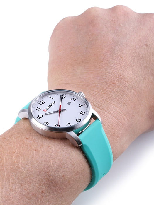 Мужские швейцарские часы на силиконовом ремешке Wenger 01.1641.108, кварцевый механизм с высокой точностью. Класс водозащиты: 100 метров, позволит плавать, нырять и заниматься другими водными видами спорта. Корпус часов изготовлен из стали, серебристого цвета.