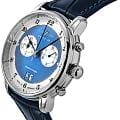 Мужские наручные кварцевые часы-хронограф Zeppelin ZEP-85843 из коллекции Friedrichshafen Chronograph выполнены в классическом стиле и сочетают элегантность с функциональностью. Корпус круглой формы изготовлен из полированной нержавеющей стали и дополнен фирменными кольцами по краю — узнаваемым элементом бренда Zeppelin. Механизм — кварцевый, калибр Ronda 5020.B , оснащённый 5 камнями, обеспечивающий точность и надёжность хода. Часы имеют функцию хронографаХронографФункция позволяет измерять отрезки времени с особой точностью: часы, минуты, секунды. Верным признаком хронографа является наличие на циферблате 3 дополнительных окошек-счётчиков. с секундомеромСекундомерСекундоме́р — прибор, способный измерять интервалы времени с точностью до долей секунды., что делает их удобным аксессуаром для решения различных задач. Циферблат выполнен по технологии гильоше с узором Clous de Paris , придающим ему благородства. Цвет циферблата — голубой гильоше с серебристыми элементами. Метки представлены арабскими цифрами, окошко большой даты расположено в положении 6 часов. Часы оснащены слегка выпуклым минеральным стеклом повышенной прочности K1 минеральное стеклоМинеральное стеклоМинеральное стекло представляет собой искусственно выращенный минерал кварца. Такое стекло отличается особой устойчивостью к повреждениям и царапинам. Уступает по некоторым качествам сапфировому стеклу., устойчивым к мелким повреждениям. Задняя крышка изготовлена из штампованной нержавеющей стали, заводная головка — рифлёная, из нержавеющей стали. Ремешок — из синей натуральной кожи с текстурой, имитирующей крокодилову кожу, дополнен классической застёжкой из нержавеющей стали. Водозащита — 50WR , что позволяет использовать часы в повседневных условиях без риска повреждения от случайных брызг воды. Габаритные размеры: диаметр 40 мм, толщина 11 мм, вес — 82 грамма. Это стильный и практичный аксессуар для тех, кто ценит качество, детали и традиционный подход к дизайну.